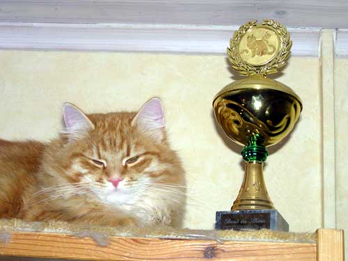 Nikolka mit seinem BIS (BEST IN SHOW)-Pokal von der Ausstellung in Paaren.
